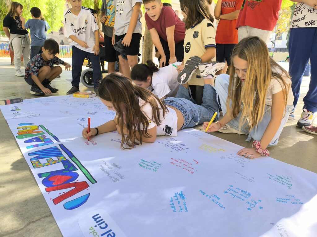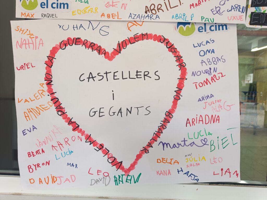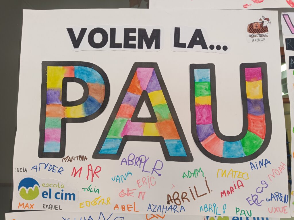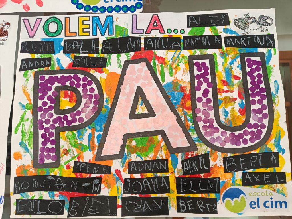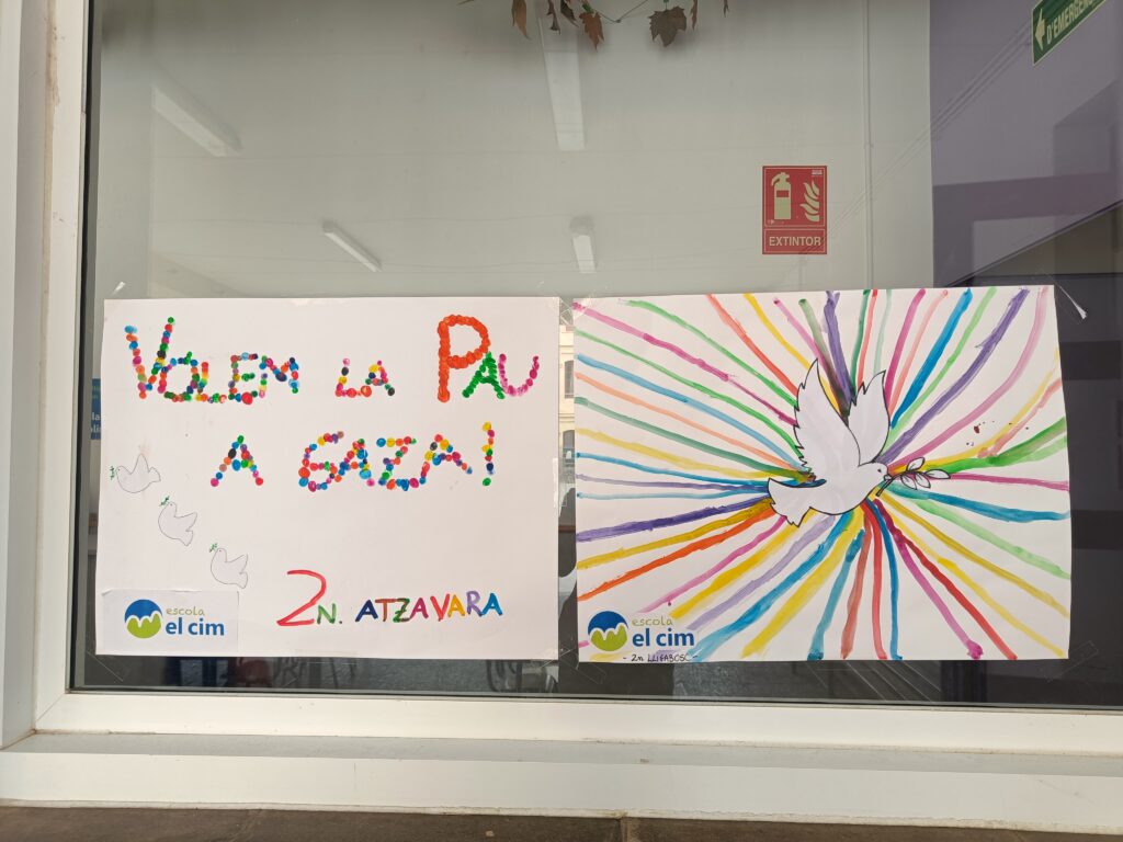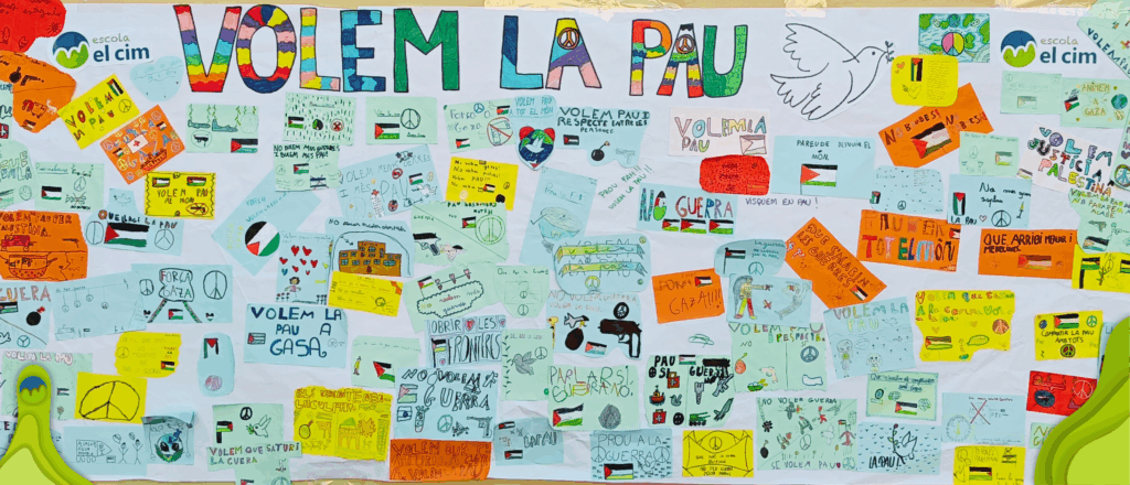 Durant aquestes setmanes, a les aules, i adaptant-nos a l’edat dels alumnes, hem treballat sobre diferents realitats de violència al món, amb una atenció especial al conflicte entre Israel i Palestina, des d’una mirada crítica, empàtica i compromesa amb els drets humans. Aquest treball ens ha portat a celebrar actes que reclamin més enllà de les parets de l’escola, el nostre desig de pau.